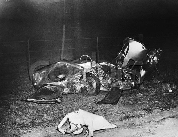 James Dean’s accident occurred on September 30, 1955. He was driving west towards Paso on Highway 466 (now 46), approaching the intersection of Highway 41. Dean was in his new Porsche 550 Spyder, which he had picked up that morning in Hollywood, a 4+ hour drive to the south. His Porsche factory-trained mechanic, who was his passenger at the time of the accident, had encouraged Dean to drive the car from Los Angeles to Salinas to help break it in. At approximately 5:45pm a Cal Poly State University student, Donald Turnupseed, driving east, made a turn from Highway 46 onto 41 heading north, toward Fresno, apparently not seeing Dean’s silver Spyder heading towards him in the opposite direction. Dean collided with the turning car and was killed, his mechanic and Turnupseed survived the accident.